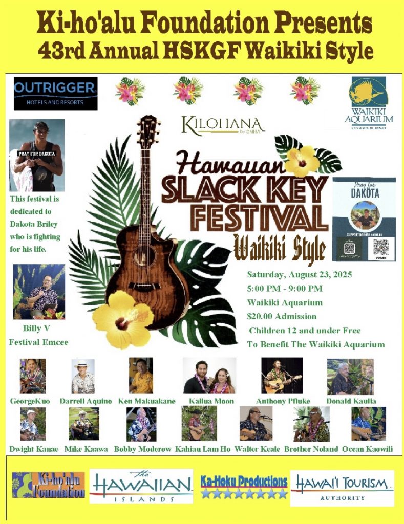 Mark your calendars and come shell-ebrate the 43rd anniversary of the Hawaiian Slack Key Festival – Waikīkī Style! Since 1982 when the festival began, incredible musicians have graced the stage filling the air with exceptional music and keeping the 190+ year old art form alive and cherished!