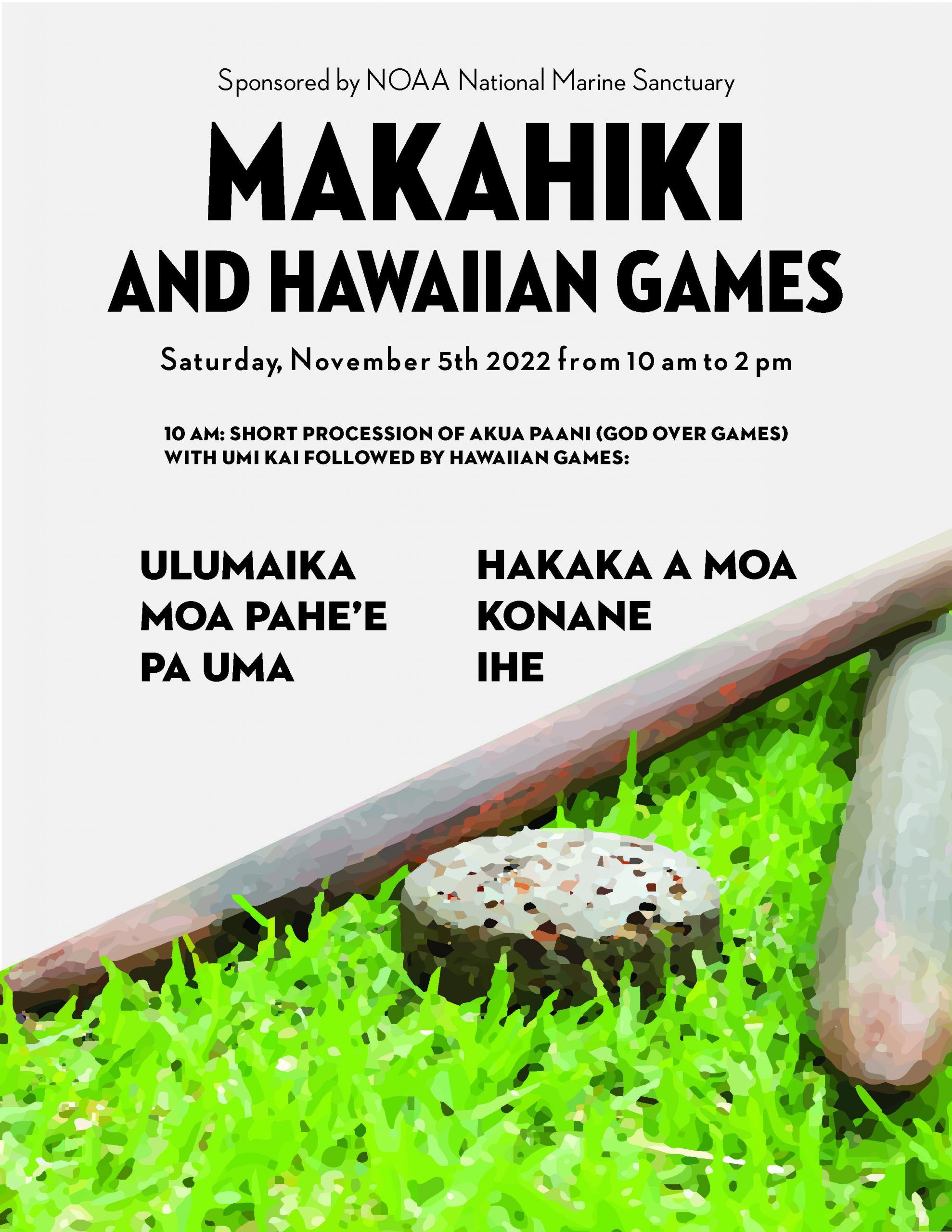 In partnership with NOAA National Marine Sanctuary, the Waikīkī Aquarium celebrates the Hawaiian New Year and season, Makahiki, with a short procession of Akua Paani (God Over Games) with Umi Kai followed by a series of Hawaiian games including Ulumaika (stone bowling), Moa Pahe‘e (dart slide), Pa Uma (wrist wrestling), Hakaka a Moa (type of lua using feet, legs, shoulders, head), Konane (checkers), and Ihe (throwing spears). Guests should arrive at 10:00 a.m. for a briefing of Makahiki and responsibilities. The Waikiki Aquarium hosts Makahiki each year, where kids can participate in traditional Polynesian games and activities.