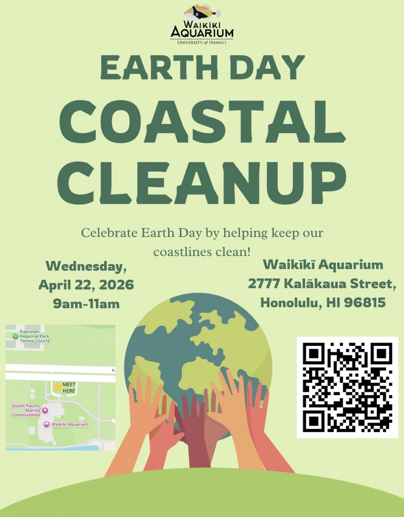 Join the Waikīkī Aquarium’s Earth Day celebration by helping keep our coastlines clean! Plastic use can be seen all around us – especially in plastic waste found on our coastlines. Bring your ʻOhana to learn more about the effects of plastic pollution and help reduce microplastics and trash found on our beaches.