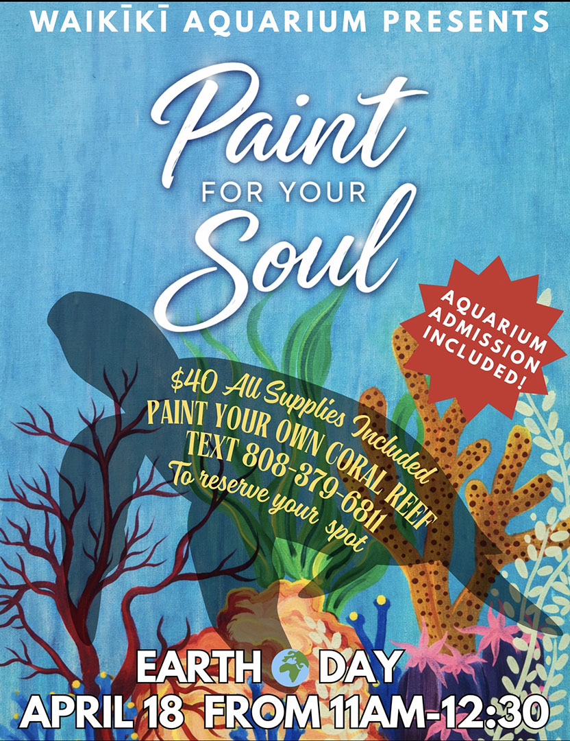 Get creative at the Waikīkī Aquarium! On Earth Day, Saturday, April 18th from 11:00 a.m., you’re invited to paint an ocean-inspired canvas! For $40, you will receive the supplies needed to create a masterpiece. A portion of the proceeds will benefit the Aquarium. Children under the age of 13 must be accompanied by an adult.